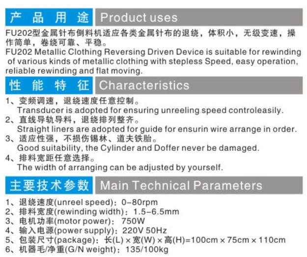 FU202金屬針布倒料機(jī)(變頻)的產(chǎn)品詳細(xì)介紹: